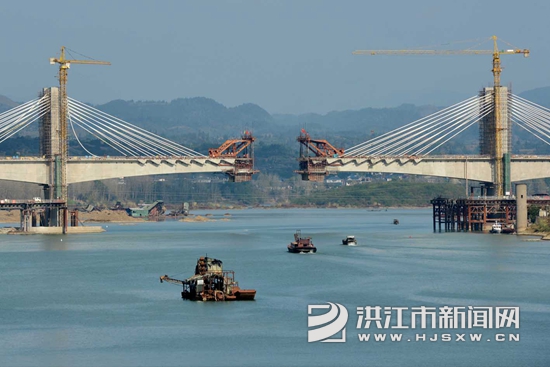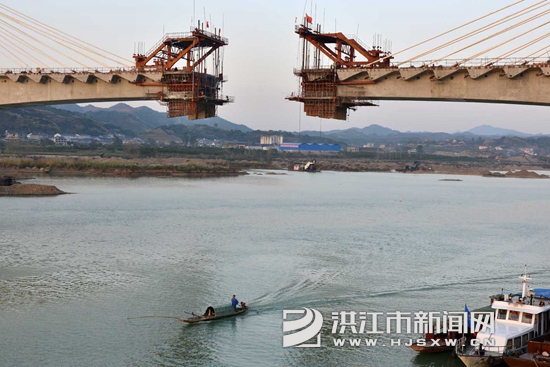 洪江市新闻网讯(通讯员 杨锡建 向华)连日来,怀邵衡铁路洪江市安江沅水特大桥工地, 建设者们日夜奋战在工程一线。该特大桥全长1611 米,主跨180 米,由中国铁建大桥工程局集团有限公司承建,计划新年之际实现大桥主跨合拢。