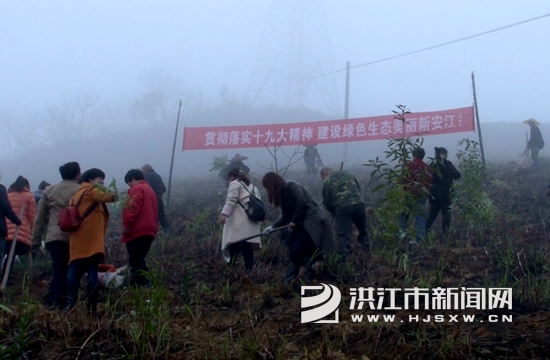 当日,参加植树的安江镇干部群众共在20亩的荒山上种植了杨梅树、杉树等树苗3500株。
