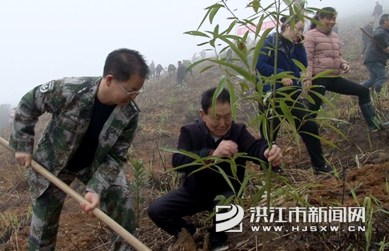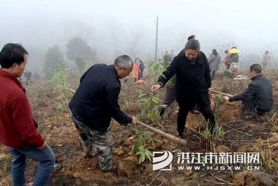 洪江市新闻网讯(通讯员 蒋中瑜)3月12日,安江镇的100名干部和群众肩扛锄头,手持铲子,来到扶车村的一座荒山上开展义务植树活动。
