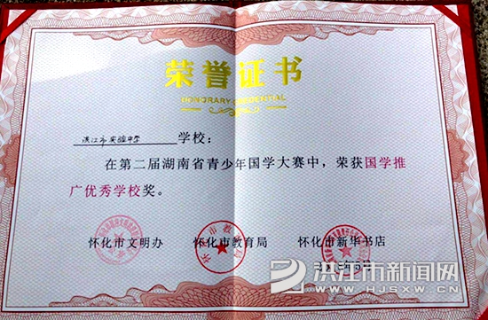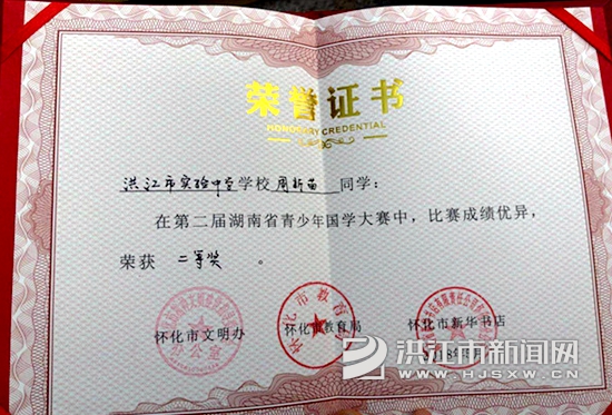 洪江市新闻网讯(通讯员 肖 群)文化是一个国家、一个民族的灵魂。文化兴国运兴,文化强民族强。5月13日下午,为期三天的“小先生·十五志于学”第二届湖南省青少年国学大赛怀化市复赛在怀化三中宏宇中学圆满落下帷幕。我市代表队——来自实验中学的易文轩、周新苗、向宇秀3位同学,经过层层比拼,在121名参赛选手中脱颖而出,分别获得两个二等奖,一个三等奖,王颖老师荣获“优秀指导老师奖”,实验中学荣获“国学推广优秀学校”称号。