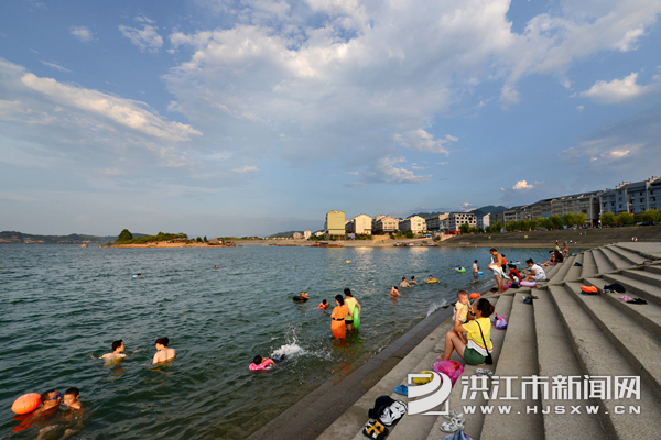洪江市新闻网讯(通讯员 杨锡建 刘付元)8月22日傍晚,洪江市清江湖国家湿地公园托口新集镇移民码头,众多市民在清澈的江水中畅游。