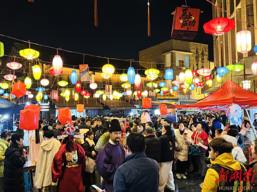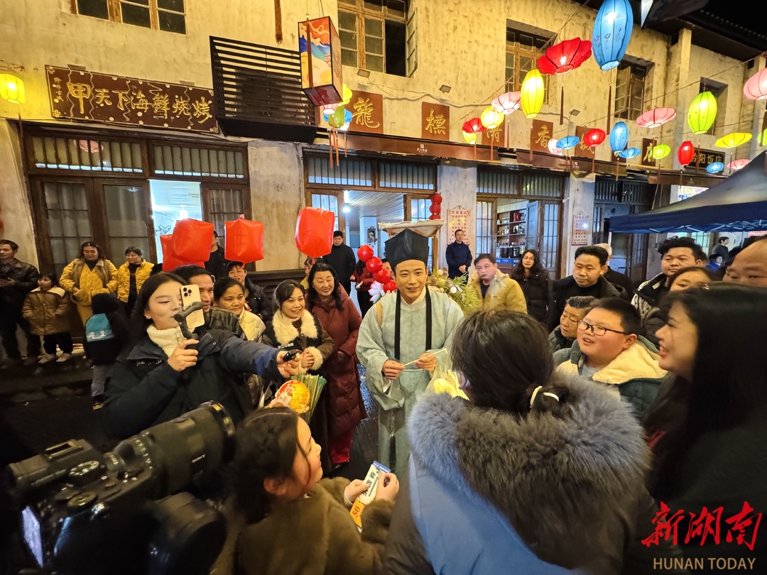 古巷之内,活动精彩纷呈。黔阳灯谜会现场,一条条灯谜悬挂其间,市民游客驻足品读、踊跃竞猜,猜对时的笑声此起彼伏,充满趣味与年味。