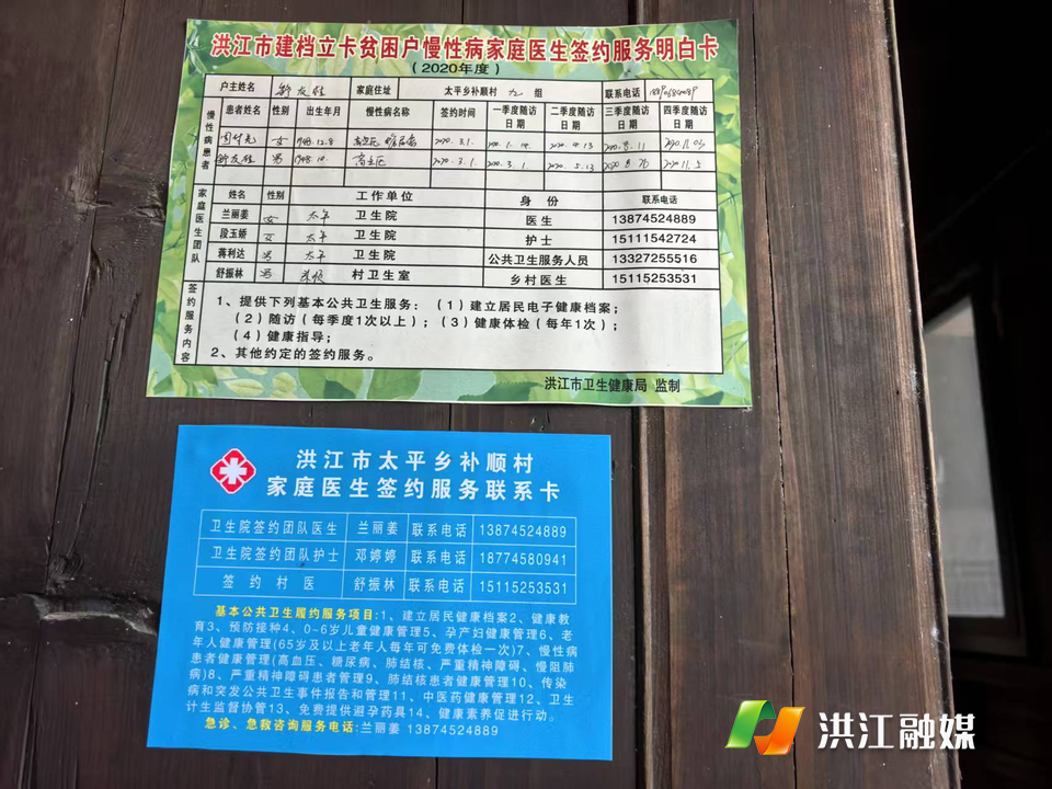 “这张服务卡上有家庭医生的电话、服务内容,以前记不住医生电话,现在卡片贴在墙上,一抬头就能看见,有个小病痛打个电话医生就给指导,太方便了!”10月28日,太平乡太平村蒋奶奶提起家庭医生服务卡连连称赞。
