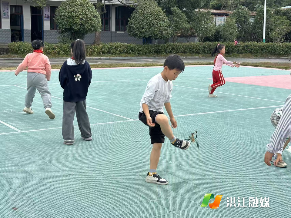 赛场上,低年级的小同学神情专注,努力控制着毽球的起落;高年级的选手则技术娴熟,展现了出色的球感和控球能力。场边的啦啦队更是卖力,加油声、计数声一浪高过一浪,整个校园都沉浸在运动的快乐之中。
